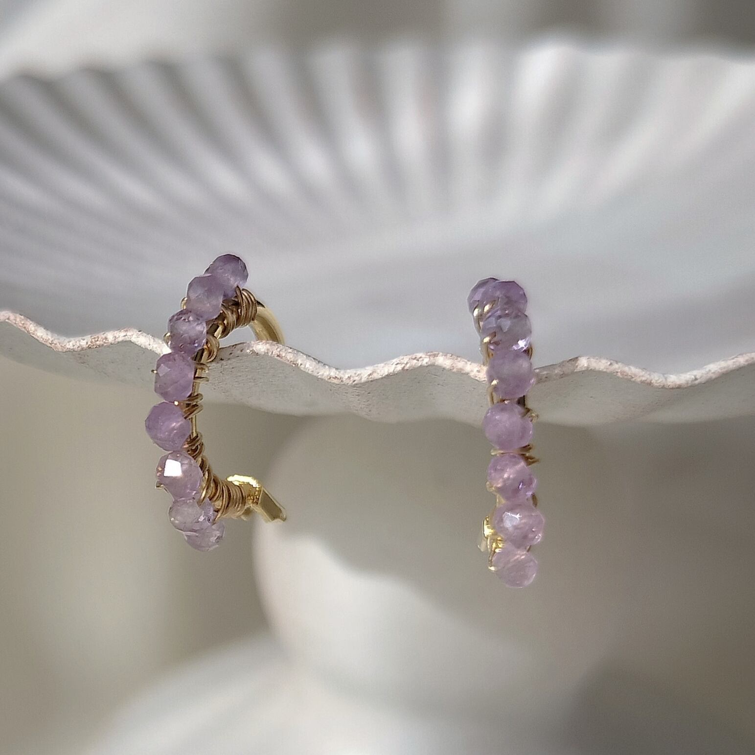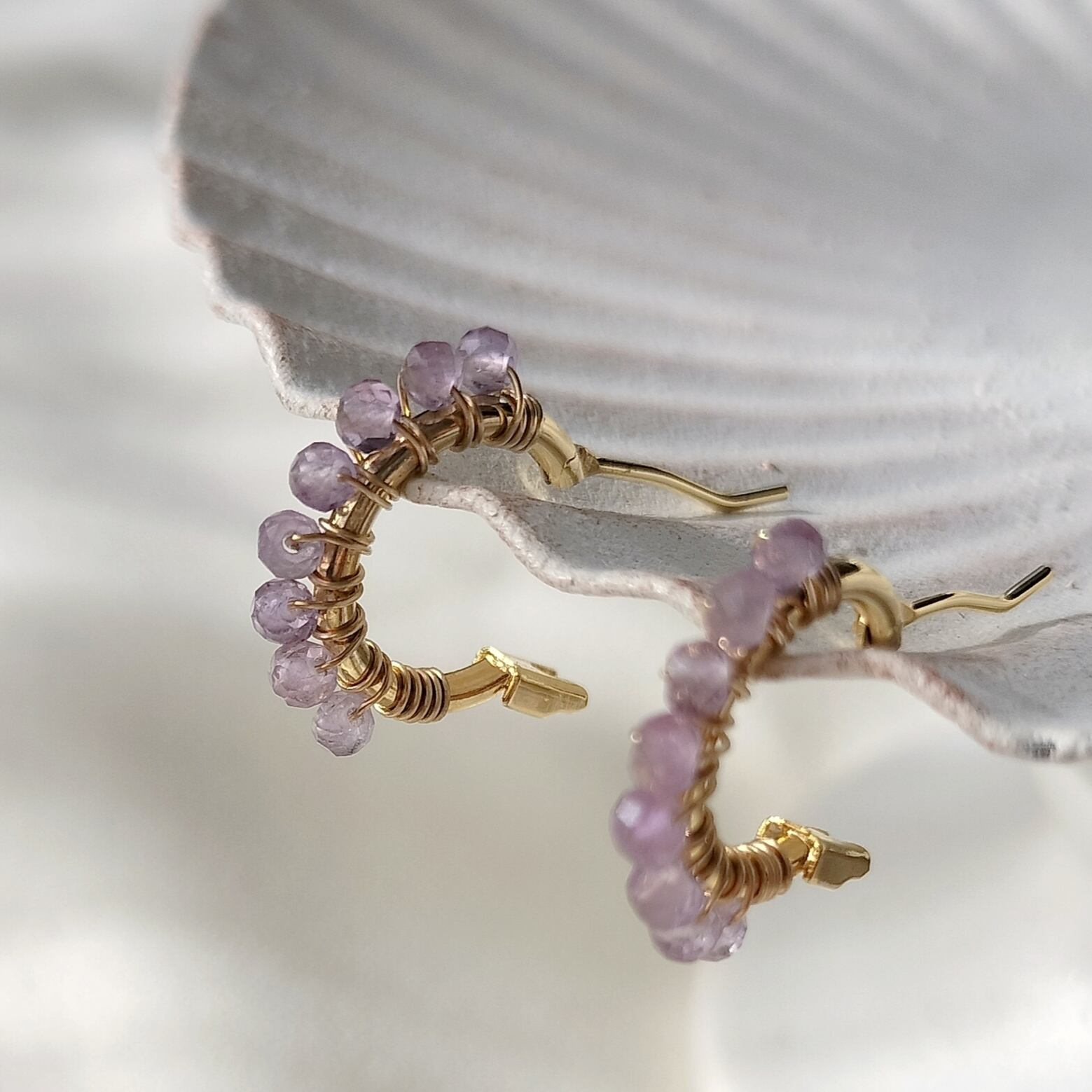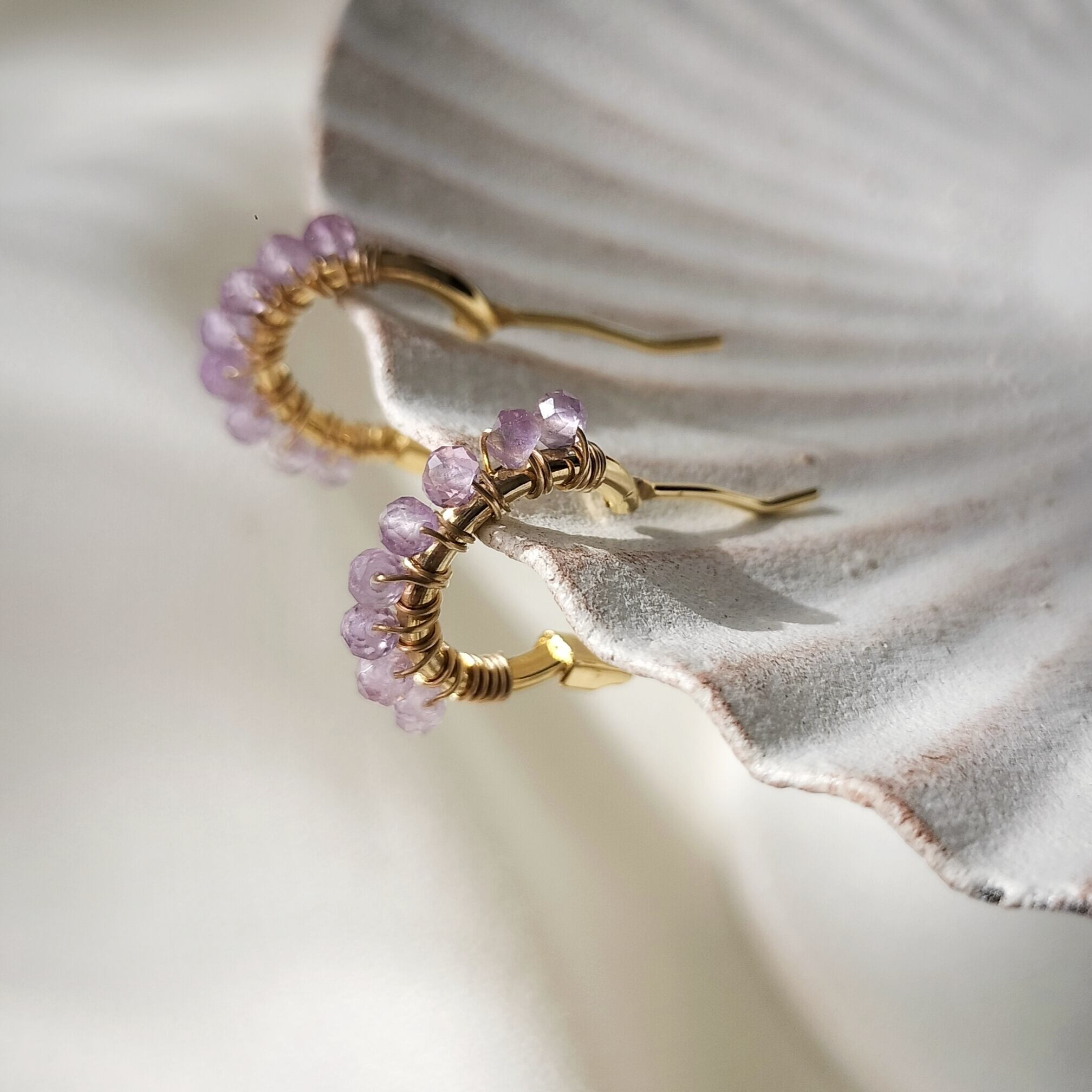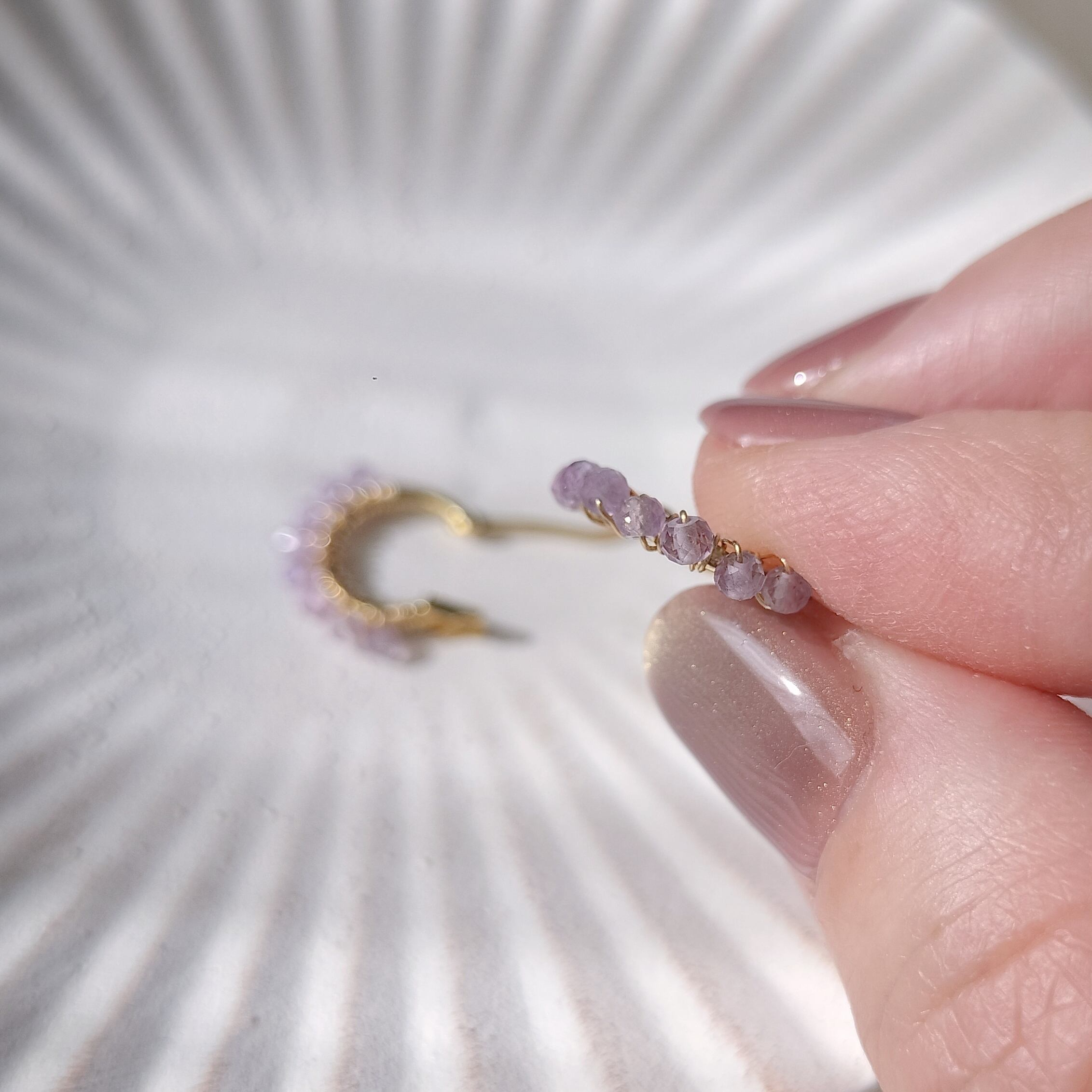 【2月誕生石 アメジスト】ラベンダーカラー 天然石 14kgf つぶつぶ フープ サージカルステンレスピアス イヤリング【iniciia.】