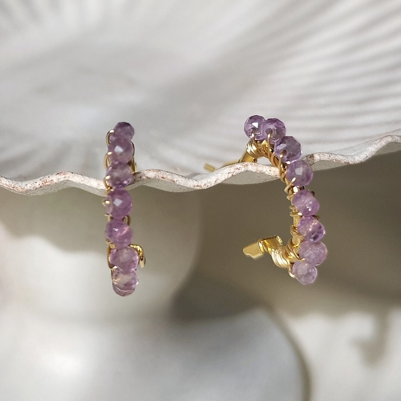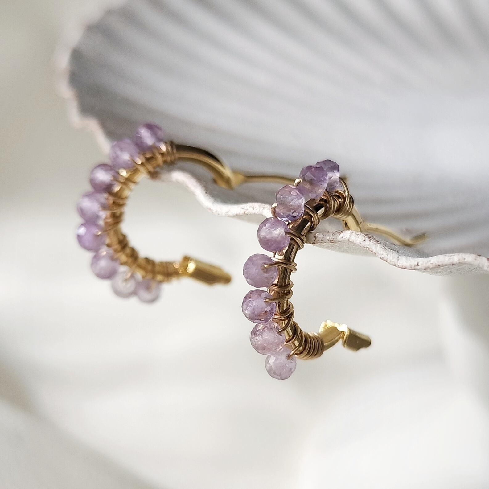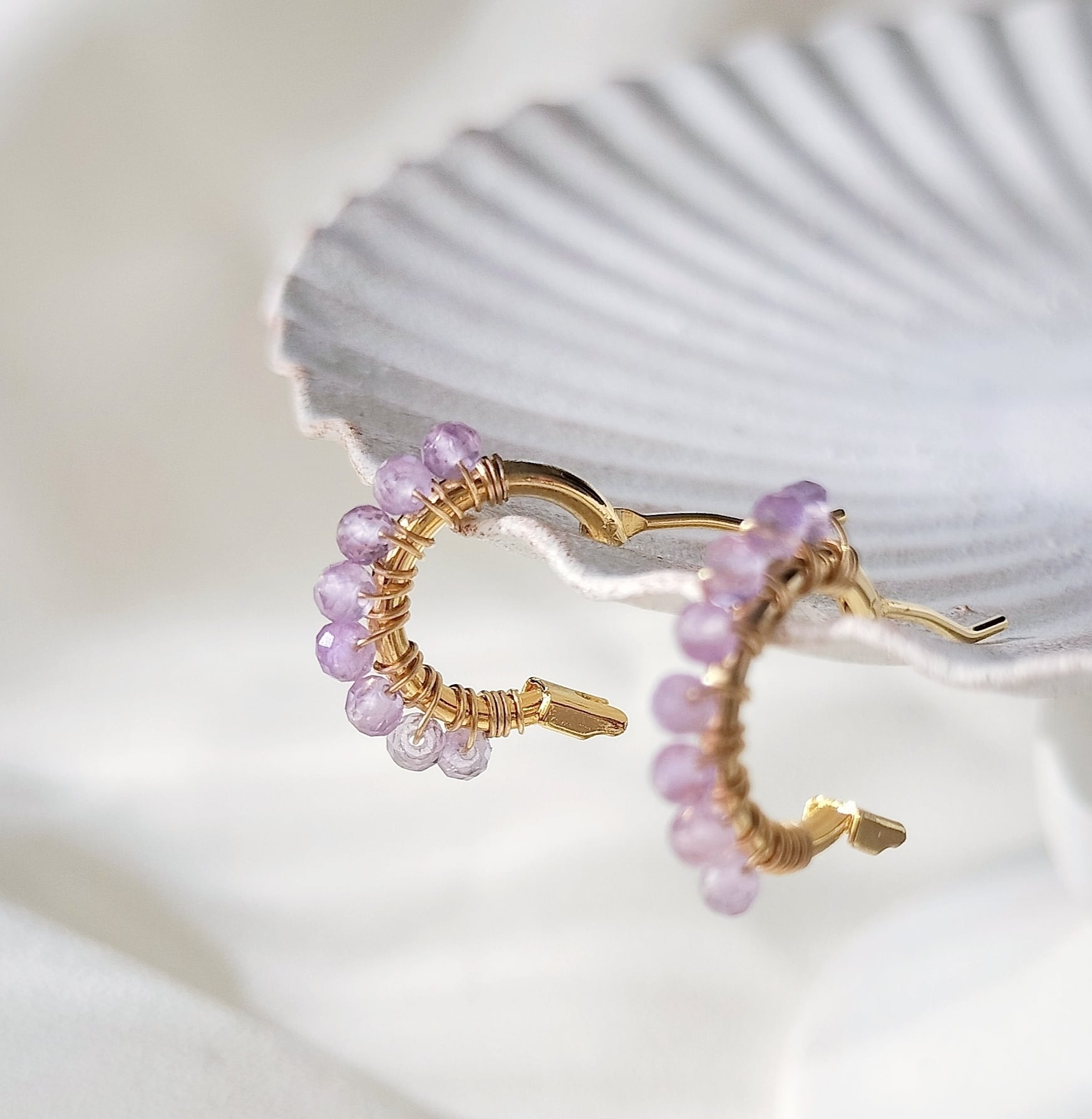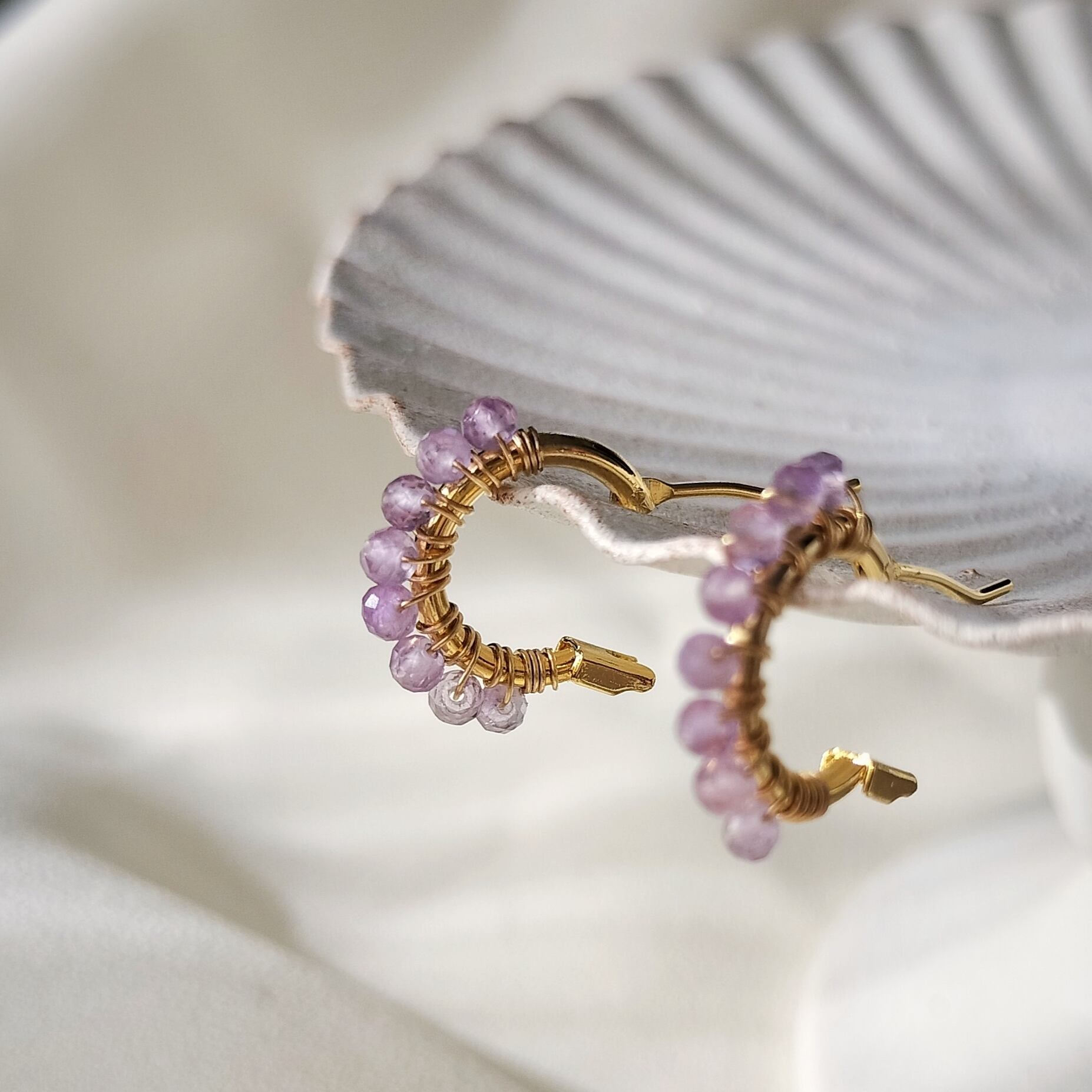 【2月誕生石 アメジスト】ラベンダーカラー 天然石 14kgf つぶつぶ フープ サージカルステンレスピアス イヤリング【iniciia.】